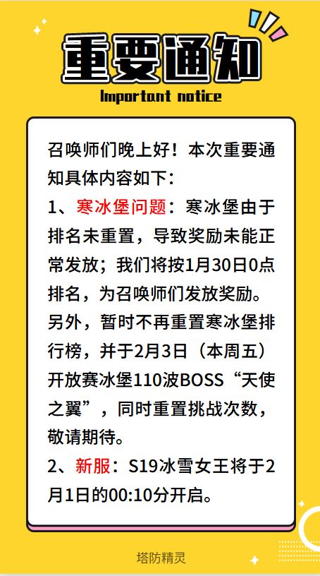 【重要通知】新服S19“冰雪女王”来临,寒冰堡将于2月3日开放110波BOSS!