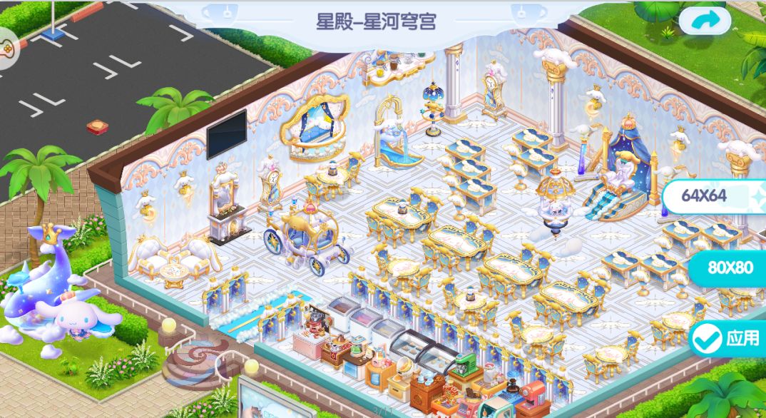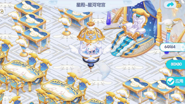 星殿归途,软萌治愈的全新大耳狗主题装饰,以大耳狗主体色彩设计的元素装饰,融合天空,云朵等设计辅助,风格百变的新款组合家具、背景,搭配店铺设计,小店个性装扮,在限时开放的活动剧情体验全新的奇幻旅程;星轨相触,白云筑梦,全新设计联动装饰「星殿-星河穹宫」上新,店长们快来收集吧!