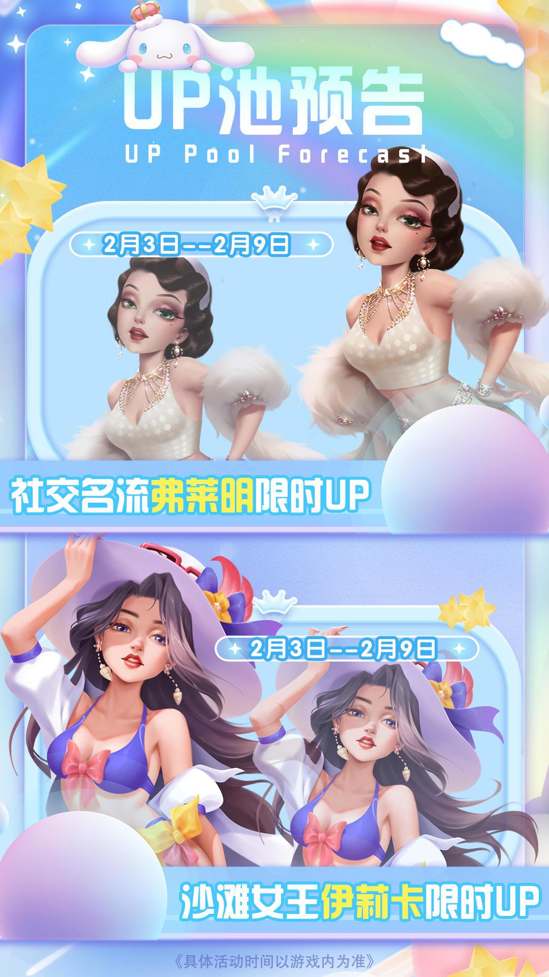 店长们囤扭蛋许久只为此刻拥有!为了最喜欢的雇员,一定要关注Ta的限时up~社交名流「弗莱明」&沙滩女王「伊莉卡」限时UP,哪个是店长们的最佳雇员呢?本周up池送上,详细时间请看下图!