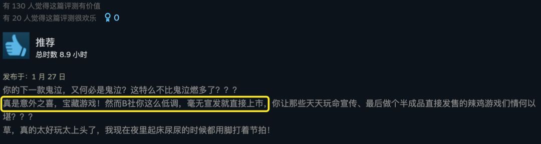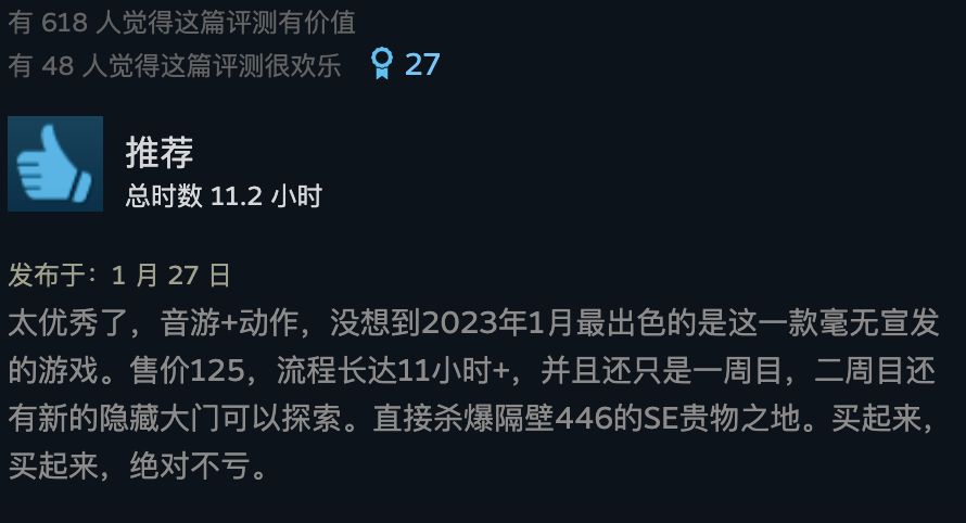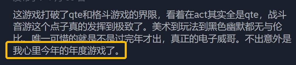 玩家们不吝溢美之词,“开年来最好的惊喜”,“音游加鬼泣像东百加夏日漱石”;