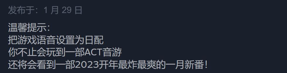 把游戏语音设置为日配,你不止会玩到一部ACT音游,还将会看到一部2023开年最炸最爽的一月新番!