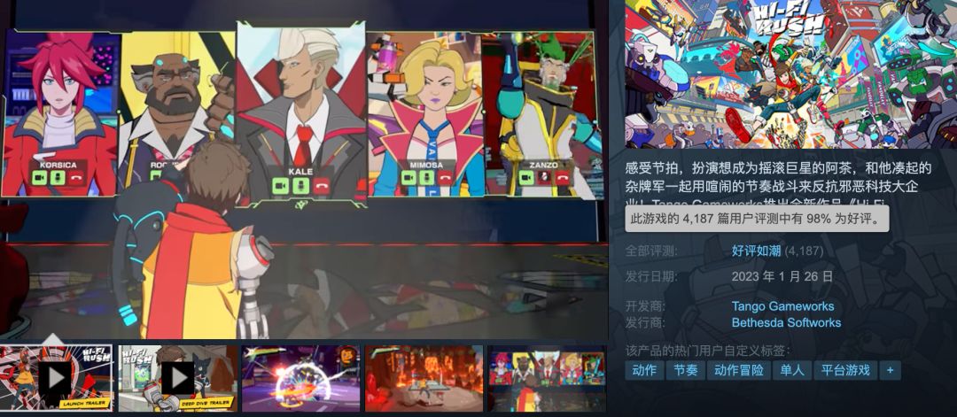 《Hi-Fi Rush》,一款动作音乐游戏。刚在1月26日的Xbox发布会首次亮相,就马不停蹄地上架开售,完全不给媒体帮它提前宣传打广告的机会,突出的是一个自信。