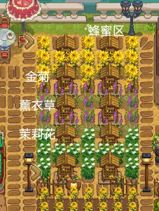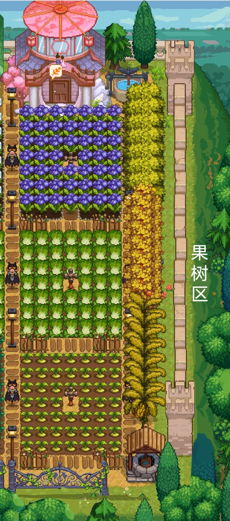 游戏玩到后期日常作物种植变为最基本,所以种植、采摘、养蚕、蜂蜜最好放到同一地方。