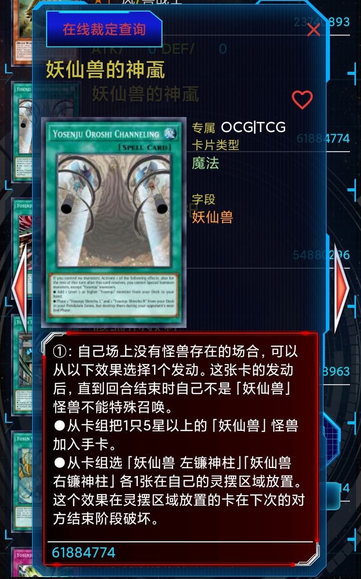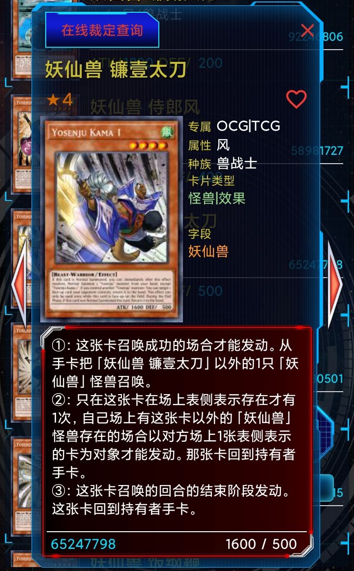 2、妖仙兽的怪物效果。①效果有点类似空牙团,一回合把手牌中怪全部拉到场上。③效果,回合结束阶段回手牌。每个怪有不同的②效果。