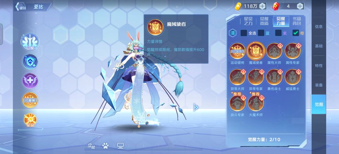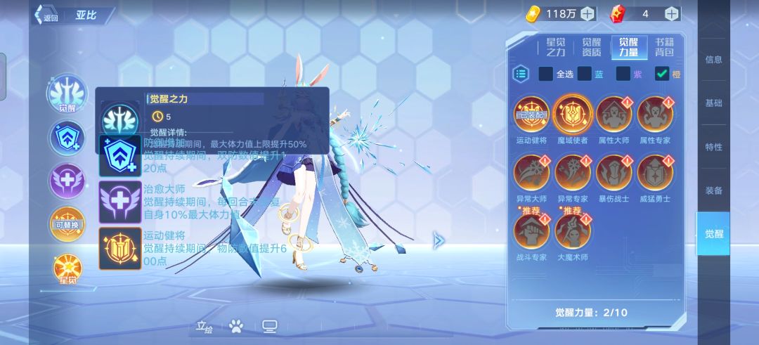 觉醒技能搭配 防御增加,治愈大师,运动健将 看遇到对面是魔攻的话换 魔域使者