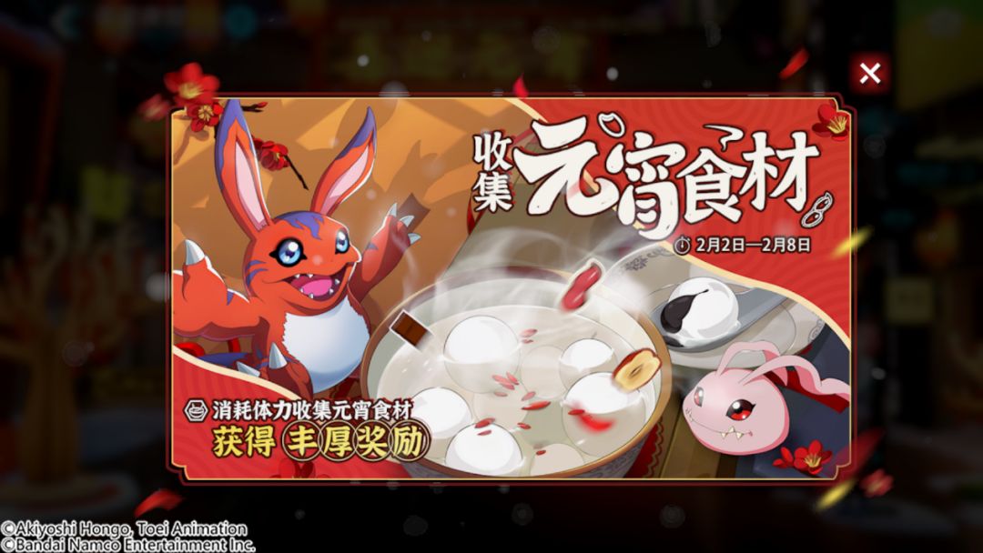 活动奖励:高级觉醒代码、红水晶、元宵礼券、稀有召唤券、数码之尘、金币