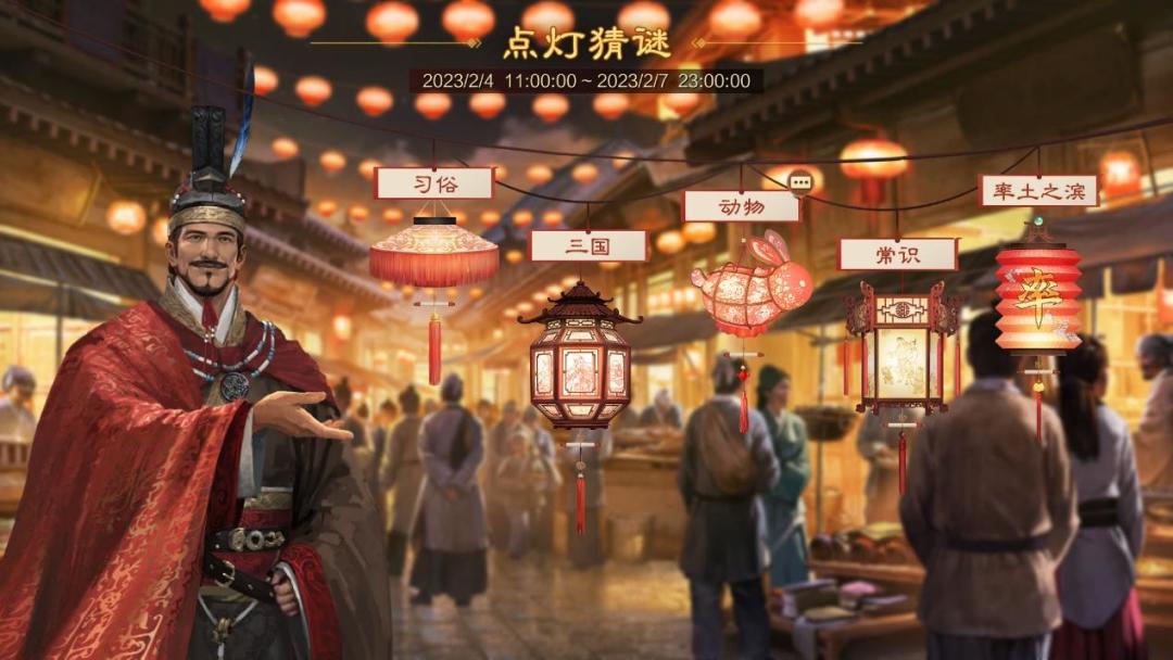 游戏内点灯猜谜活动时间:2023/2/4(正月十四) 11:00:00 - 2023/2/7(正月十七)23:00:00