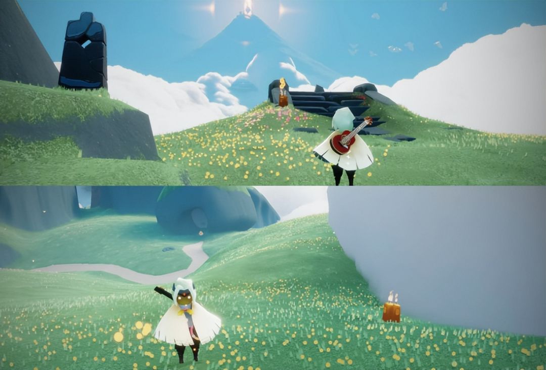 第二个季节蜡烛:拿完第一个之后我们继续往前走,前往蝴蝶平原,到达之后往右边飞,在隐藏图的门口的前边就能看到第二个季节蜡烛。