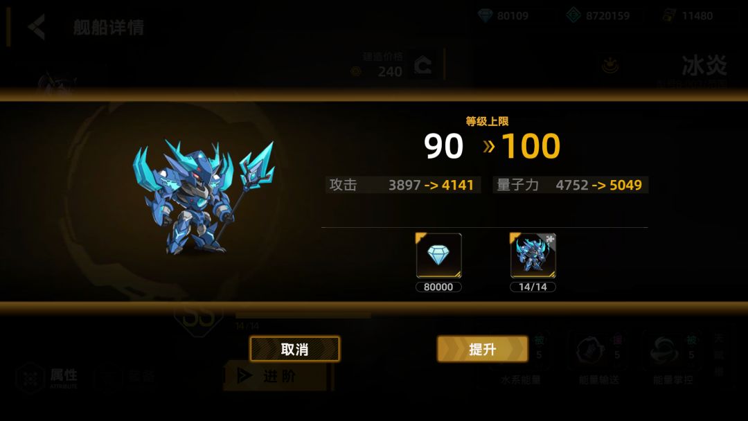 两个物理打手说完,我根据我的抽卡选择了群攻机甲(ss级的群攻就一火一冰两个,都可以用,我用的冰,因为抽出来最多的是它),这机甲是全队的控场和法系输出担当(也就是量子力),而且ss技能里正好有加量子力和加水系伤害的,虽然面板不是很超模,但法阵全无死角的控制和攻击,正好帮物理高攻查漏补缺,按我的图搭配技能是最优解: