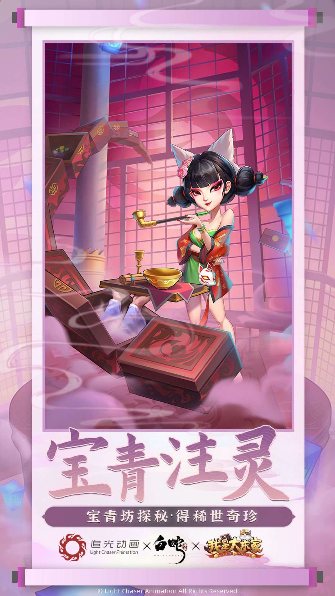 在本次《白蛇:缘起》联动中,随着宝青坊主的到来,各位大东家也将有机会进入宝青坊探宝,这个平日里装作是中药铺的神秘宝青坊在双面九尾狐——宝青坊主的经营下,收尽世间奇珍异宝,据说每个木匣里都有惊人财宝,不知道又有哪些幸运的大东家能在里边找到自己想要的奇珍呢?