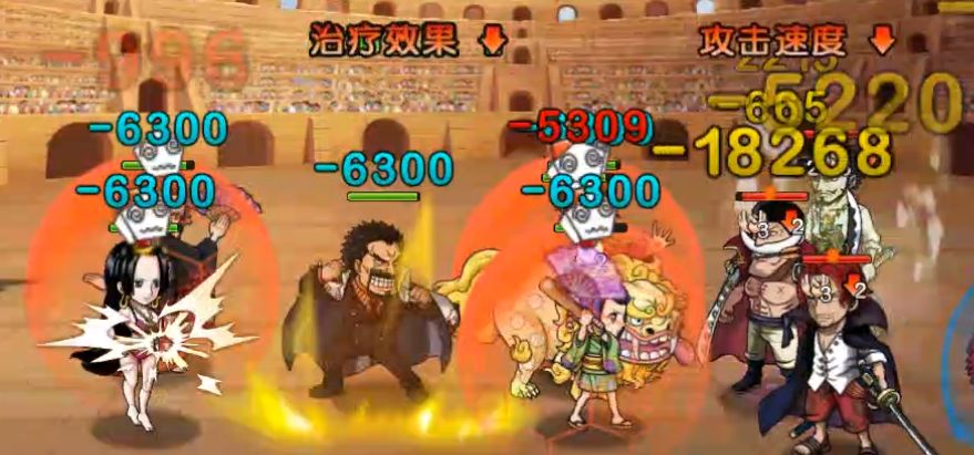 在我们分析RED·杰克斯大招时,专门花费篇幅讲到过“无属性化”的作用,但这只能限制水系伤害于海侠甚平梅花皮II的设定。可梅花皮I中还有一个设定——海侠甚平自身每次受到伤害时都会为我方全体进行一次治疗,此恢复效果与属性伤害无关。但在RED·杰克斯3觉时,愤怒状态下的前两次闪旋斩还会在5秒内降低80%敌方受到的治疗量(如下图所示,有“治疗效果降低”的字样显示),这一设定恰好可以很好的限制像纯水系、纯火系这样拥有几乎全时段被动获取治疗的体系,是不可多得的佳技。