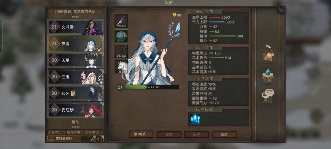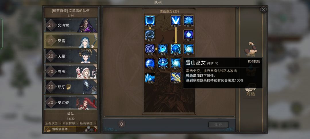 我点了灰雪的雪山巫女,但是巫术攻击没有增加