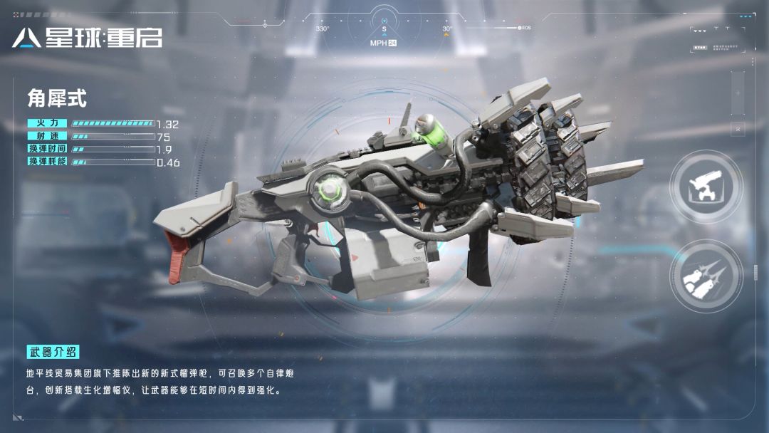 ★角犀式:地平线贸易集团推出的新式榴弹枪。可召唤多个自律炮台。通过枪械搭载的生化增幅仪,可以使枪械能力在短时间内得到强化。