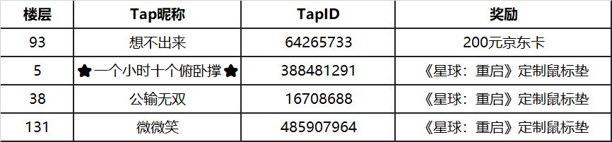 幸运参与奖(3名):《星球:重启》定制鼠标垫。由官方从所有参与者中抽取。