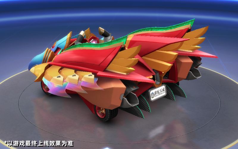 流线型的尾翼在提升赛车操控性之外,更是增添了一丝凌厉气息,一眼望去犹如神兽降世,威压十足。释放氮气时,尾部喷气口迅速打开,释放出炽热的凤凰火焰,两条金红相间的丝带迎风飘扬,将祥瑞气息洒满赛场!