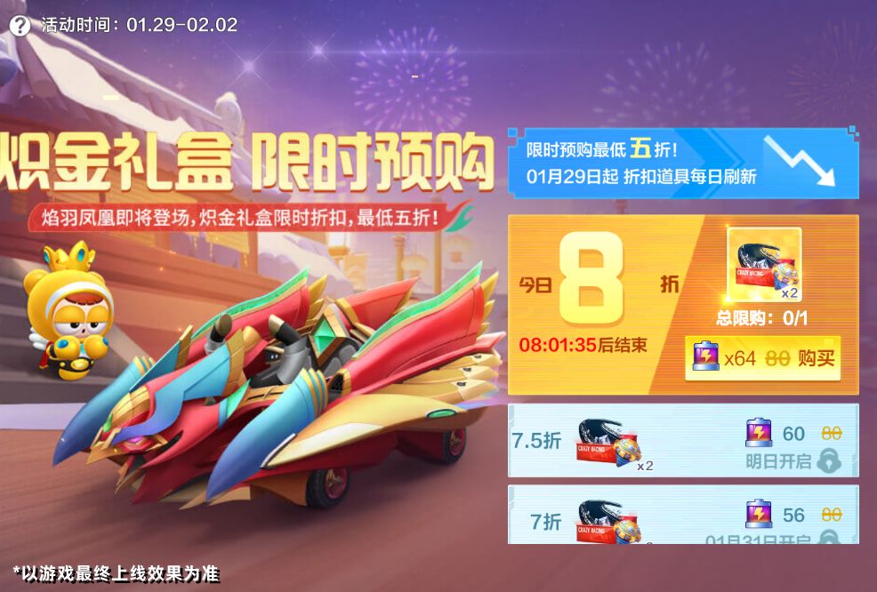 福利站已于1月29日起开启【炽金礼盒预购】限时活动,活动期间车友们每天都能以折扣价购买炽金礼物盒*2。预购活动共计5天,限时预购最低五折!千万不要错过哦~