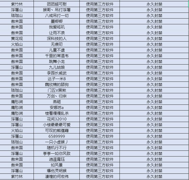 本帖将用于各位上仙举报公屏不当言论、使用第三方软件(包括但不限于除游戏安装包外的脚本、外挂、加速器、美化包等)、卡BUG等违规游戏行为,我们将对举报内容进行核实,并视情况给予禁言1天-永久禁言、封禁角色、封禁账号等惩罚。