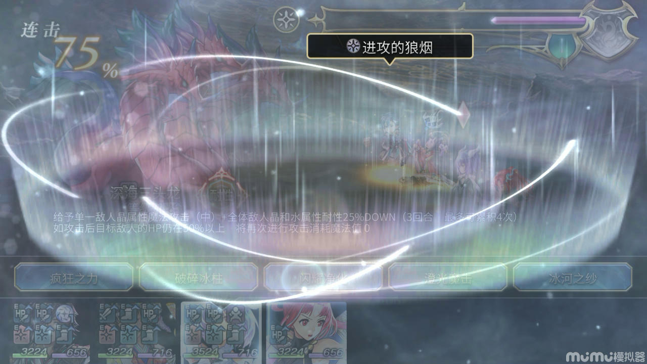 这个怪需要特别说明一下,千万不能用火属性攻击,否则怪物锁血后会反击,所以才给军事装了个地灾印变成土属性攻击。没有地灾随便换个什么其他属性的也行,只要不是火属性就OK。AF的过程中记得用下让军师用下调虎离山改下耐性。剩下的就交给龙妹吧。