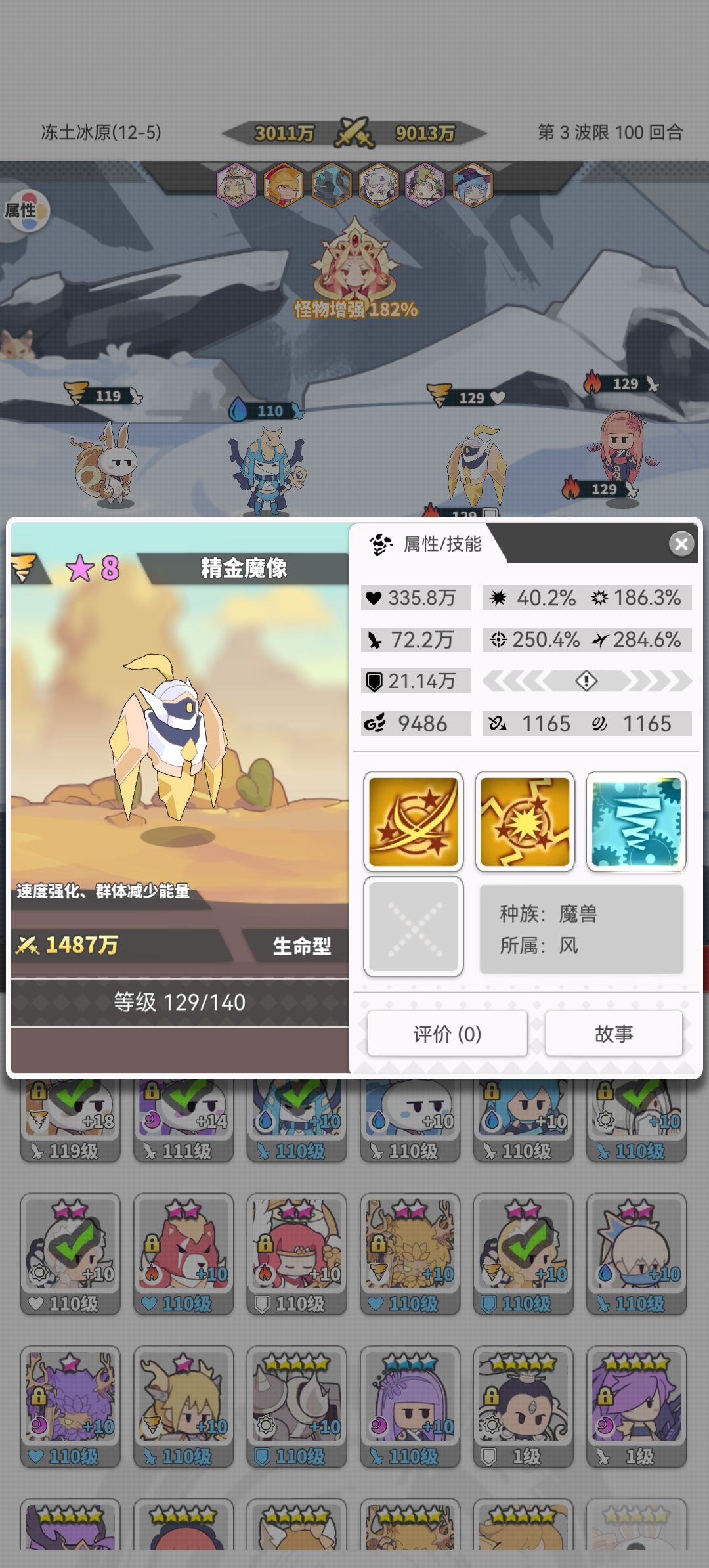 其次就是追求伤害,命中基本合格的情况下宝具优先升级攻击,然后就是队伍的伤害buff仙子加天使,这种情况下我上的老头,打满三回合伤害还不够,那就是我们的极限了。越后期越战越多。随着宝具提升,我们怪物增强也越多。
