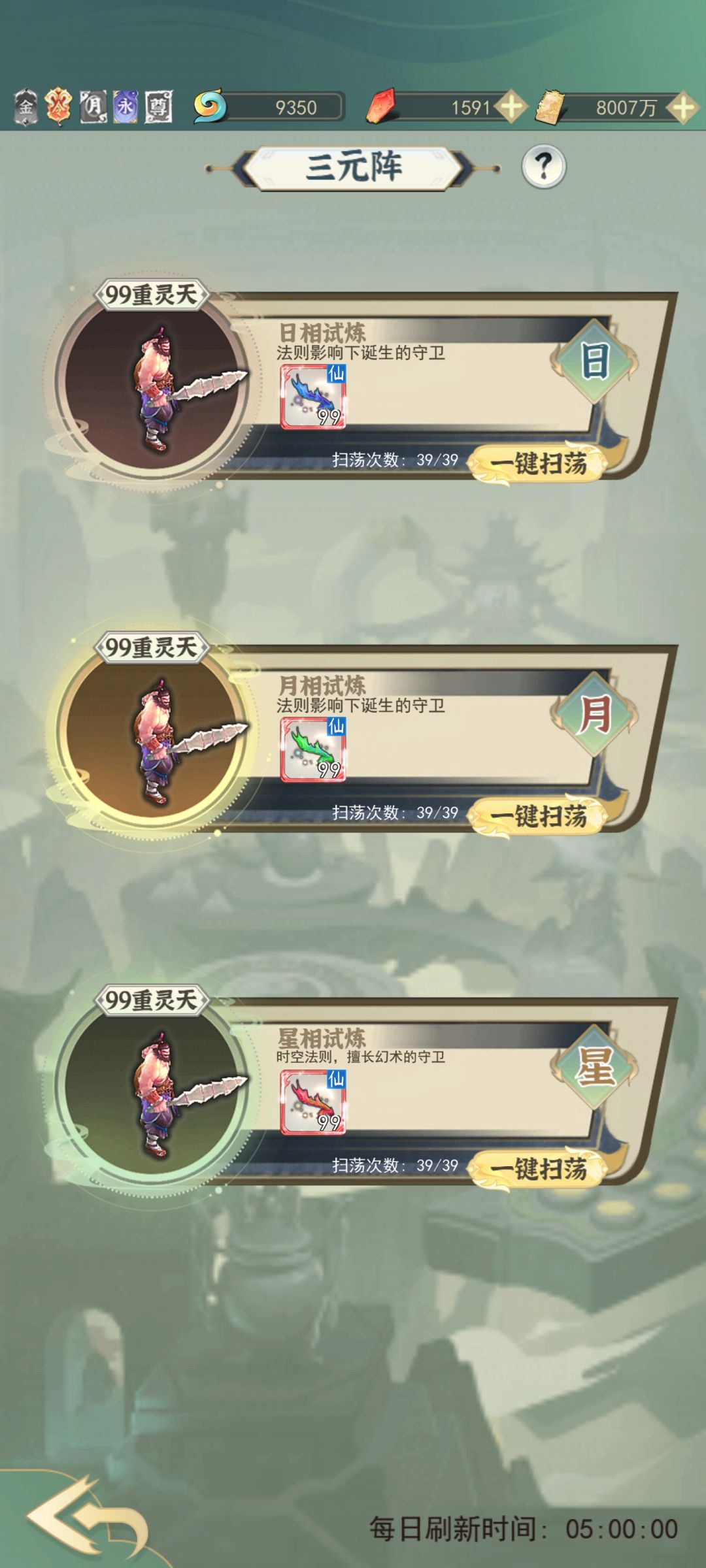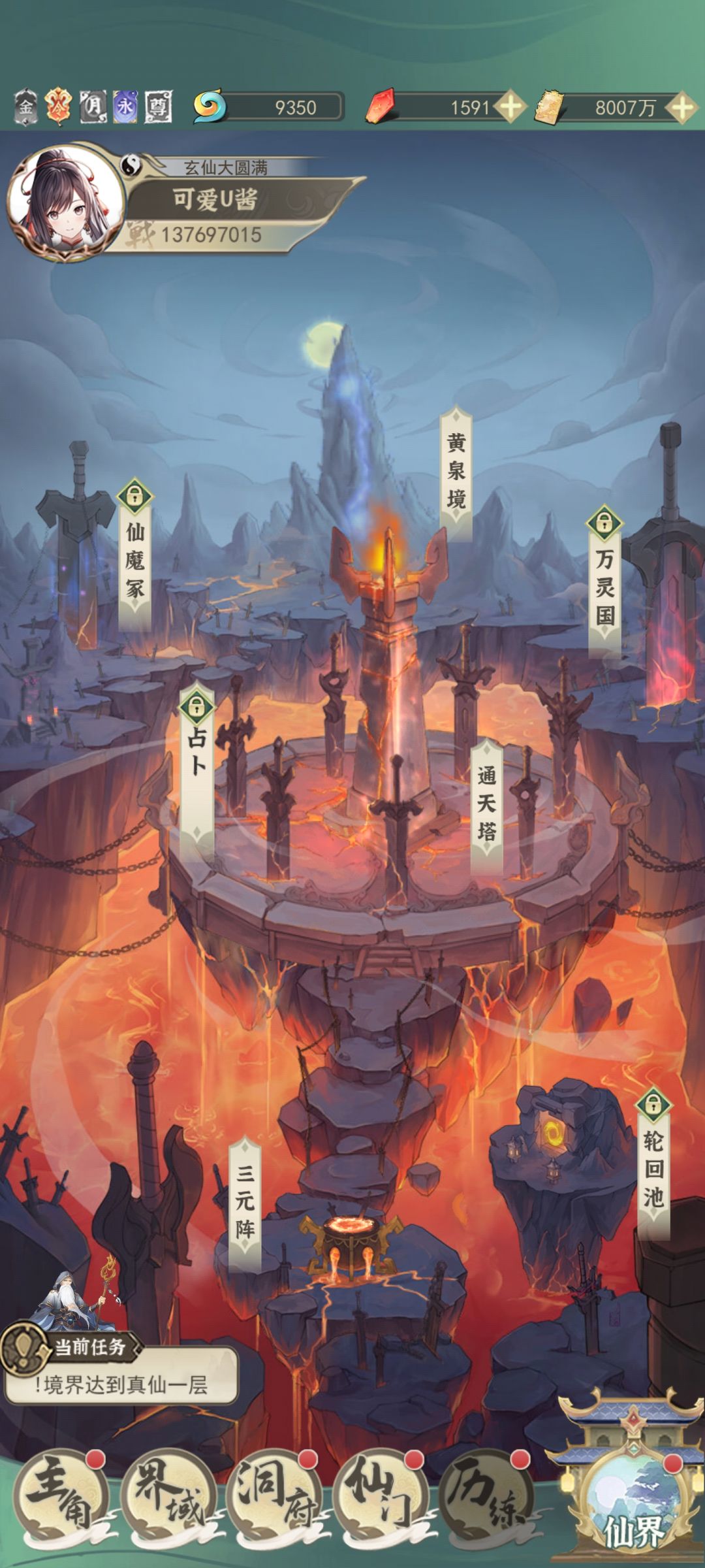 仙界的历练对于刚上来的只需要关注三个:通天塔,三元阵,黄泉境。先介绍三元和黄泉