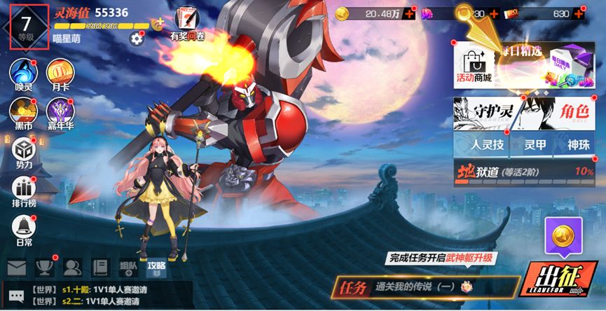 当新手流程走完后,等级逐渐慢下来后,体力还会有剩余,这个时候可以去主线副本-进攻灵域找一关3星通关的进行扫荡主线,可以快速获得经验值进行升级。如果体力不够了,可以去黑市的每日商城领取每日免费体力,或者花点魂晶购买体力。