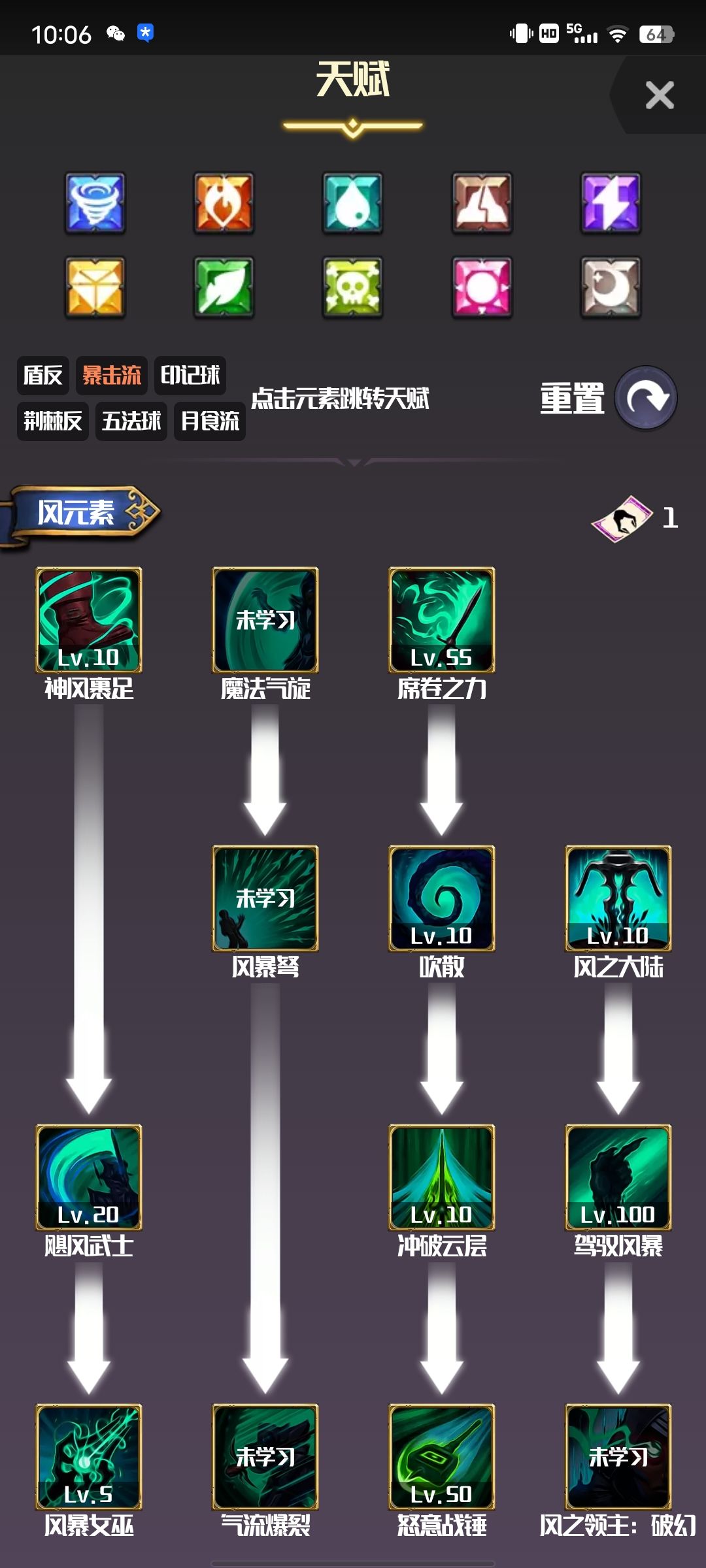 天赋也是随便点点,毕竟对游戏机制理解还不深,主要是金系和风系