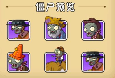 首先我们来了解一下这个关卡的僵尸有哪些,这个关卡僵尸一共有到6种,他们分别是:斗篷僵尸、淘金僵尸、牛仔僵尸、路障牛仔僵尸和机器牛。