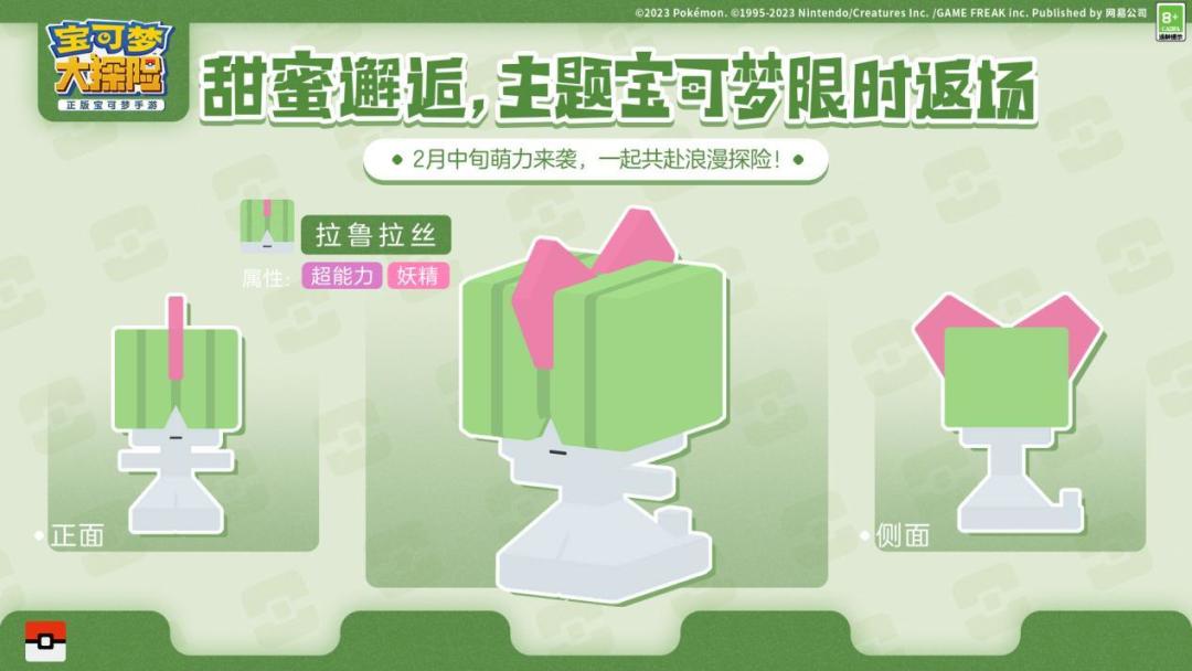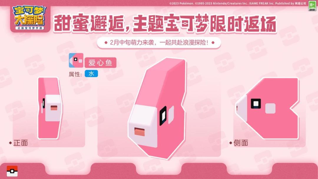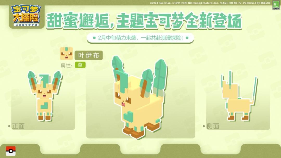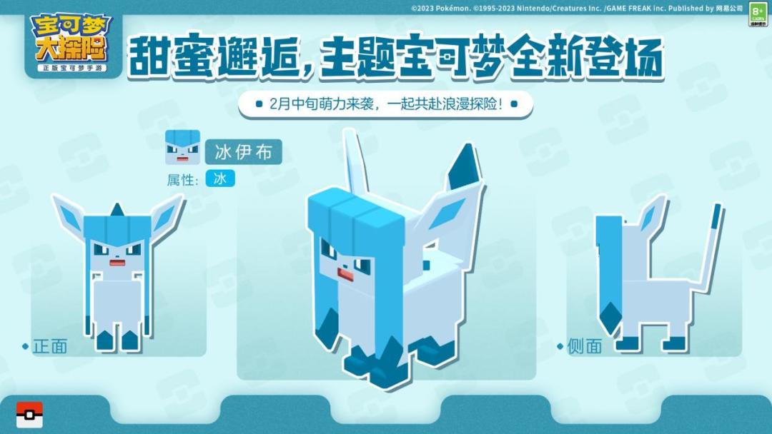 情人佳节至,浪漫甜蜜来!由网易、The Pokémon Company、GAME FREAK inc.携手开发的《宝可梦大探险》将在方可乐岛上开启“甜蜜邂逅”活动,伊布家族的仙子伊布、冰伊布、叶伊布被现场爱意满满的氛围吸引,将和探险家们展开一段奇缘。大家熟悉的伙伴拉鲁拉斯、咚咚鼠、爱心鱼也再次降临方可乐岛,和探险家共同感受节日里的浓情蜜意!