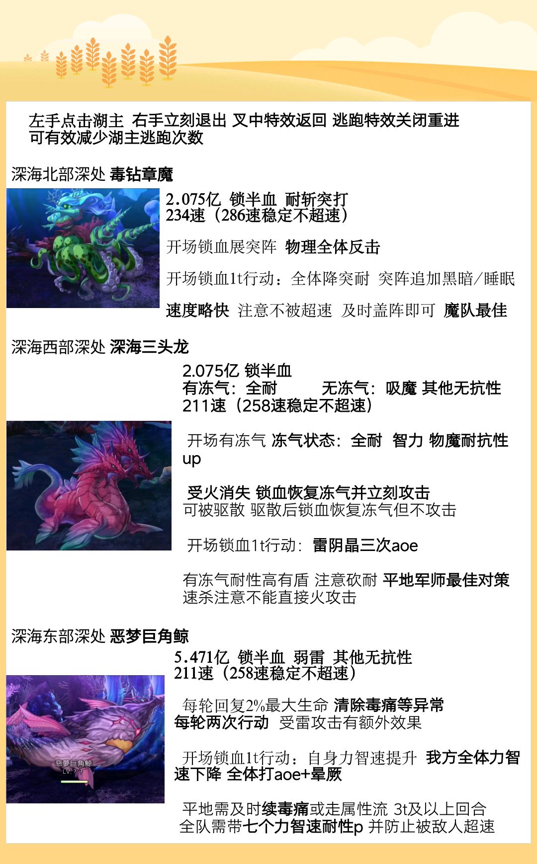 ③打鲸鱼章魔都需凹降速,先打鲸鱼可以确保碧莲回满血,碧莲打章魔2~3t不可使用物理攻击