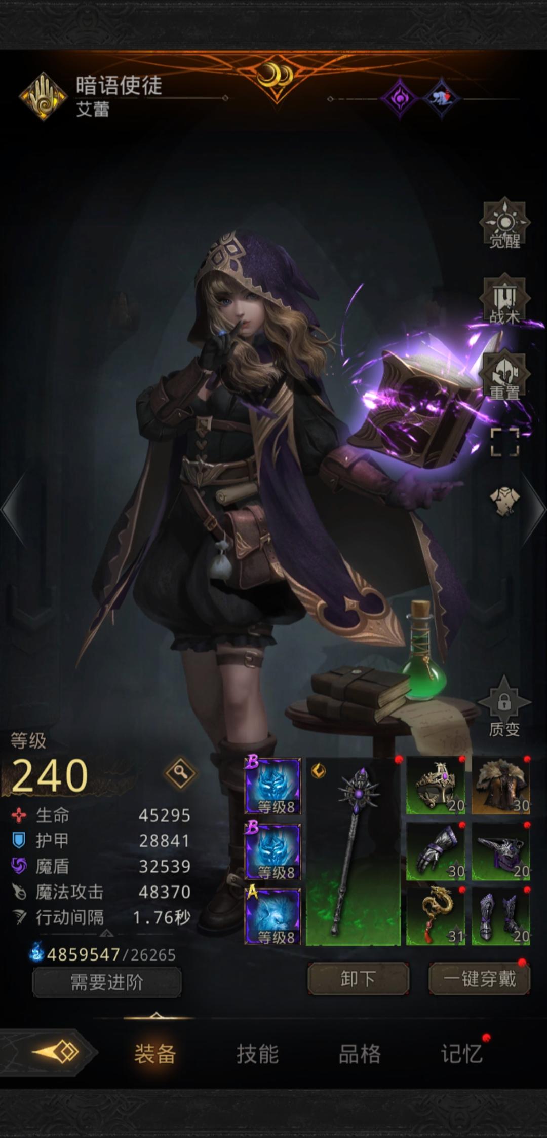 接前几天轻松捅穿圣子约坦后,收了几天菜,将T和奶的等级提升到270,极光单C继续300,面板22W,其他三位240级。