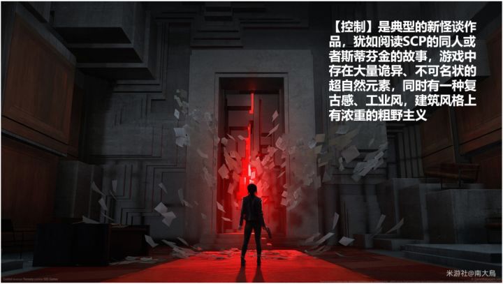 实际上,这座空间站的设计上很类似游戏【控制 Control】中的联邦控制局,游戏中,玩家初入控制局深陷超自然力量腐蚀的“太古屋”,不得不一边探索各种奇异的收容物,一边战斗和解密。同样的,星穹铁道的剧情中,玩家的诞生来自星核猎手卡芙卡的未知潜入;同时名为反物质军团的势力袭击空间站,双方打的一团火热。。。
