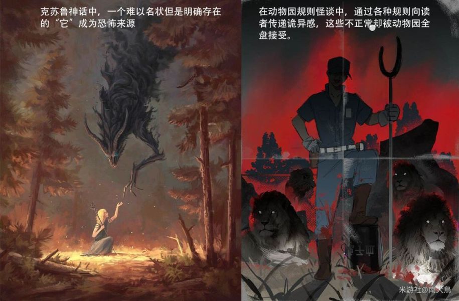 (举例如动物园怪谈,收容失效的基金会,【科洛弗档案】【X档案】)克苏鲁神话则是介于新旧之间的过渡作品(它是“开源”的)