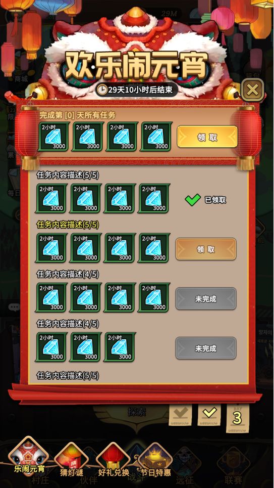 参与方式:完成元宵节期间限定系列任务,即可领取对应奖励。