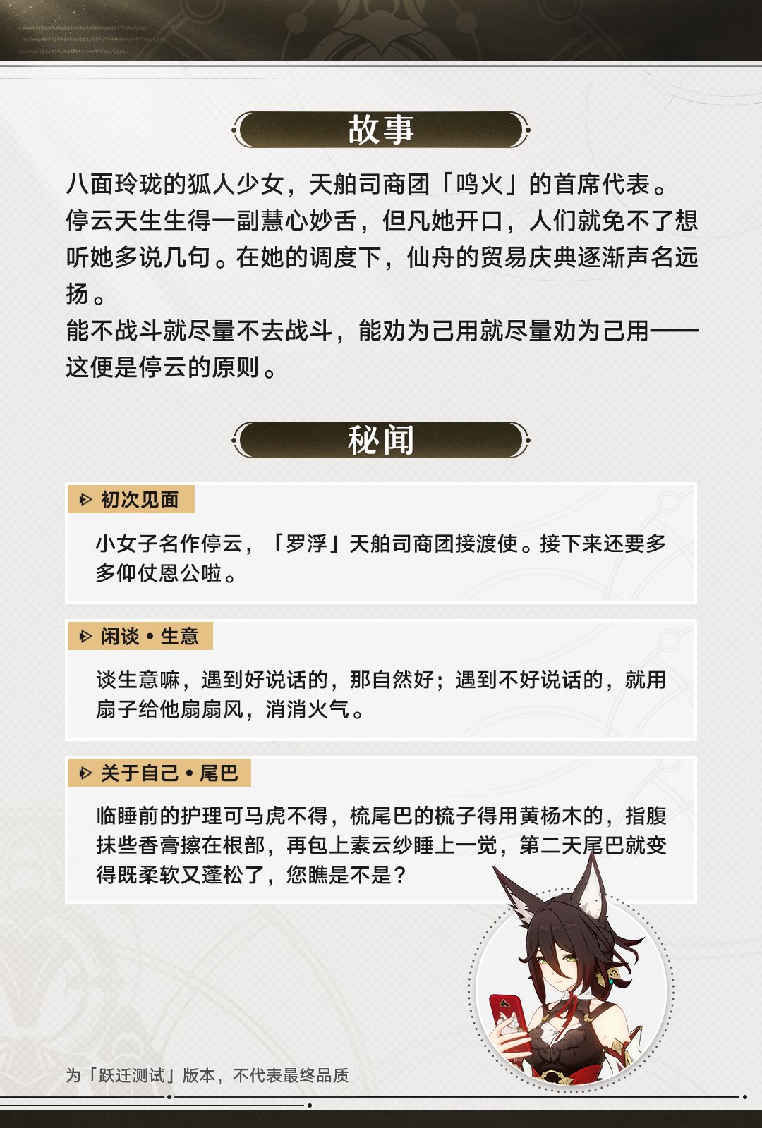 开拓者好呀,今天为大家带来的是「停云」角色前瞻。
