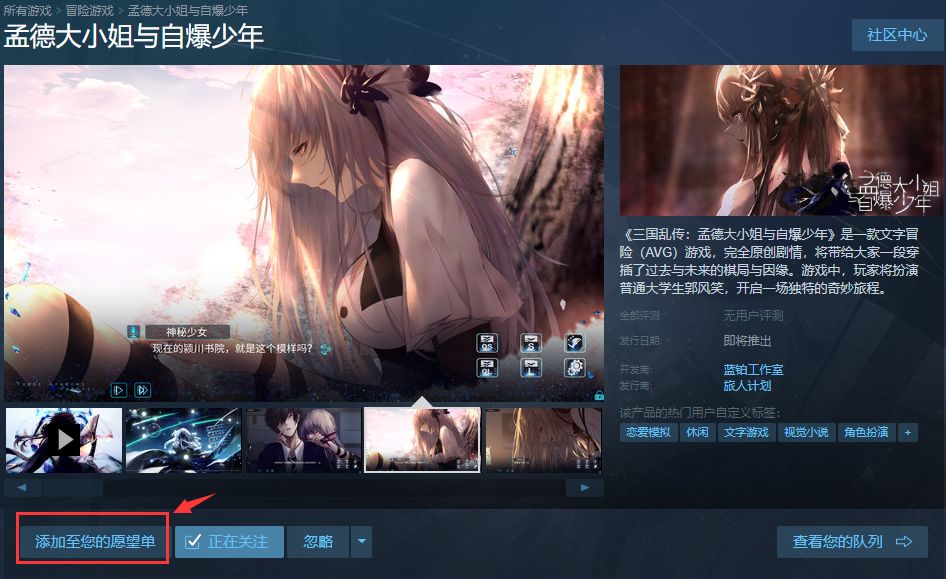 或许您只是想观望观望,但请将我们加入愿望单,以便能即时获得最新消息。感谢每一个加入愿望单的你,因为都是一缕光。