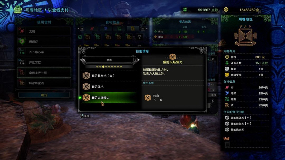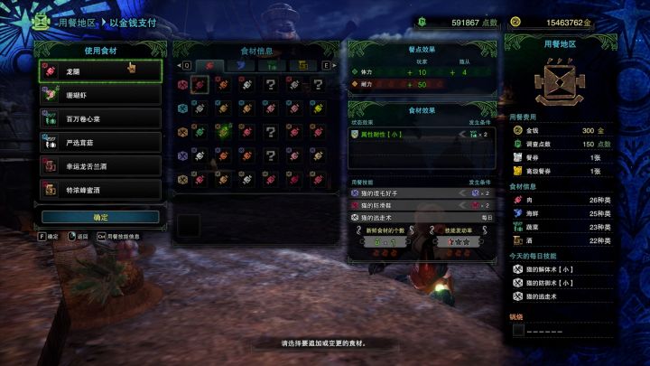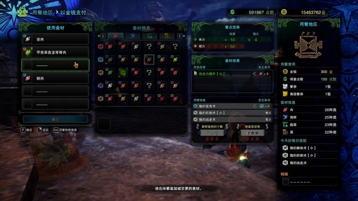 生息演算的吃饭加属性,这形式和怪物猎人、最终幻想15一样,挺有意思的。