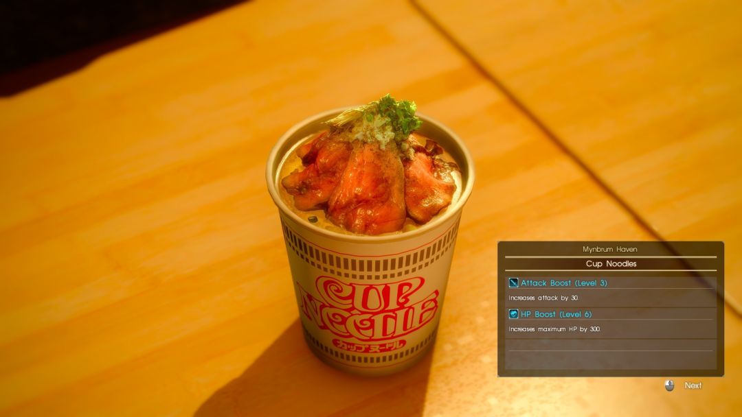 (ps:最终幻想15截的图电脑重置删了,拿杯+30攻击+300生命值的泡面糊弄一下,后三张分别时陆行鸟、远处的巨神之地和帝国机动战舰)