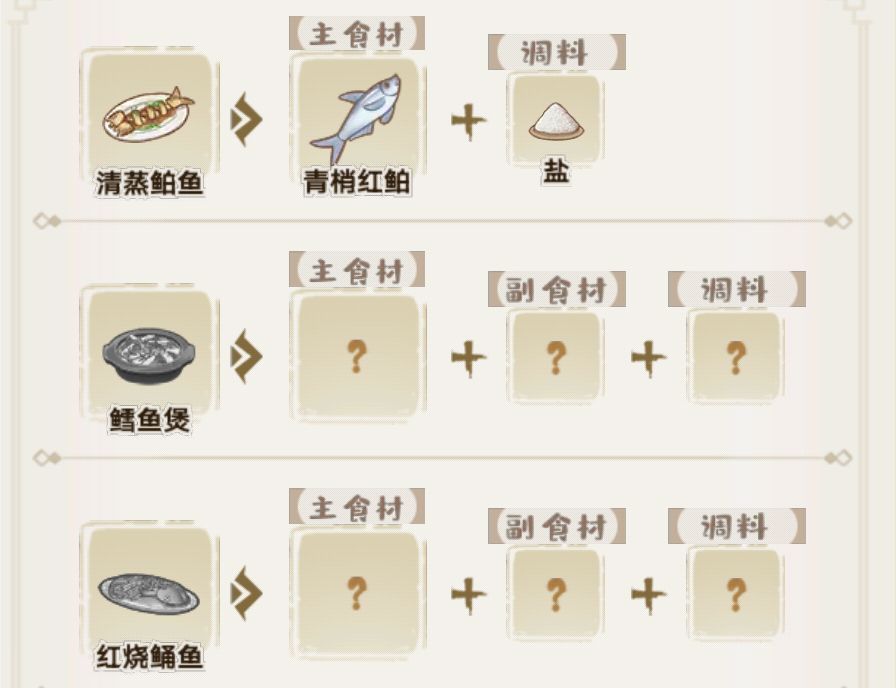 稀有鱼都被尝试的差不多了,差六个菜谱,有缘人救救我