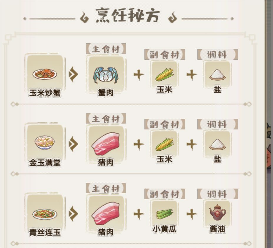 #解忧小村落五级菜谱