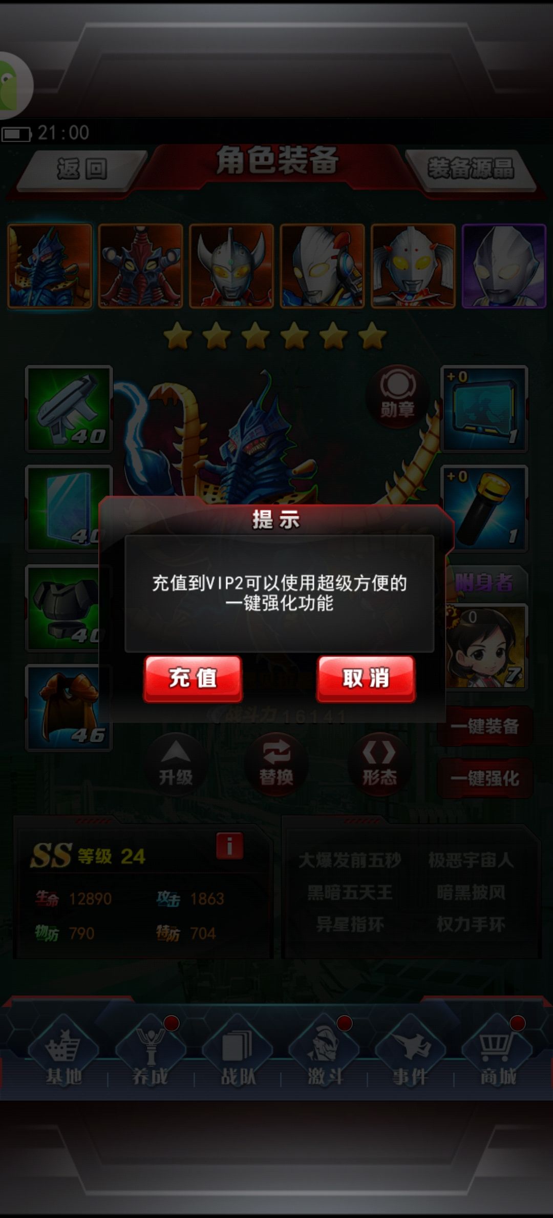 ,副本推的都困难。哥,隔壁奥特曼集结内坨玩意儿一键强化装备都不用V2啊,游戏其它都挺好的,立绘战斗都挺不错的,你说要逼氪咱也不至于连这点钱都要逼吧