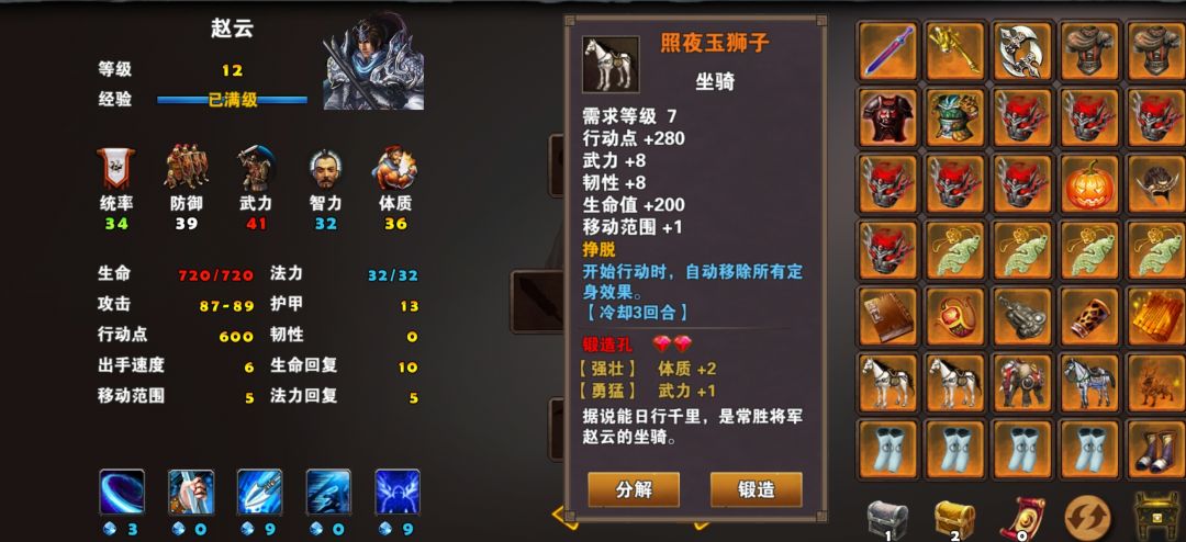 照夜玉狮子:行动点+280(大部分坐骑都是+280行动点少数坐骑是加260行动点既然是赶路我们就选行动力+280的)