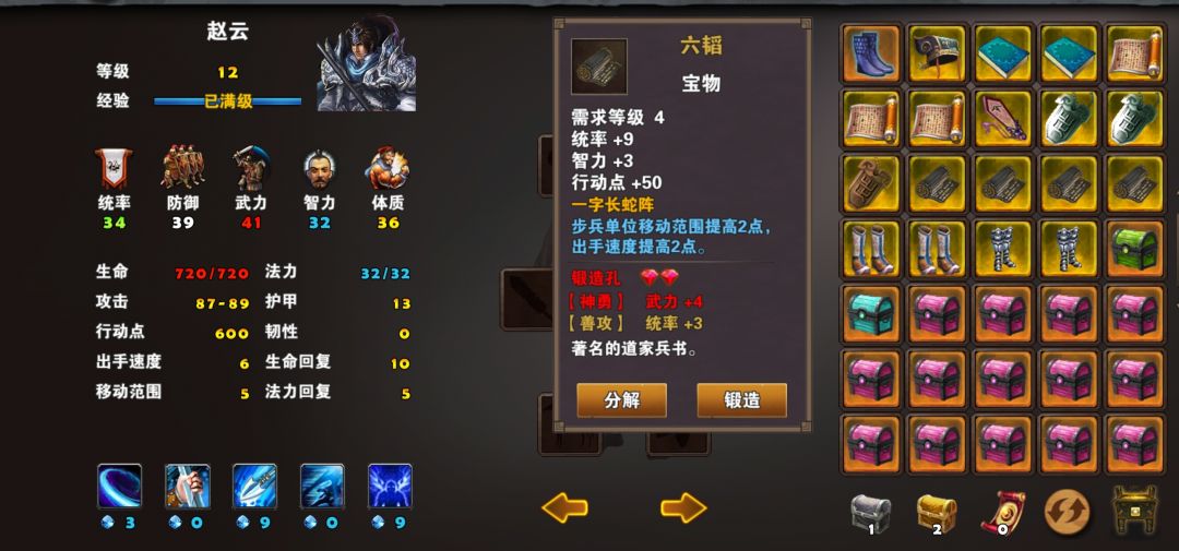 宝物:铁骑令(黄装)、六韬(黄装)