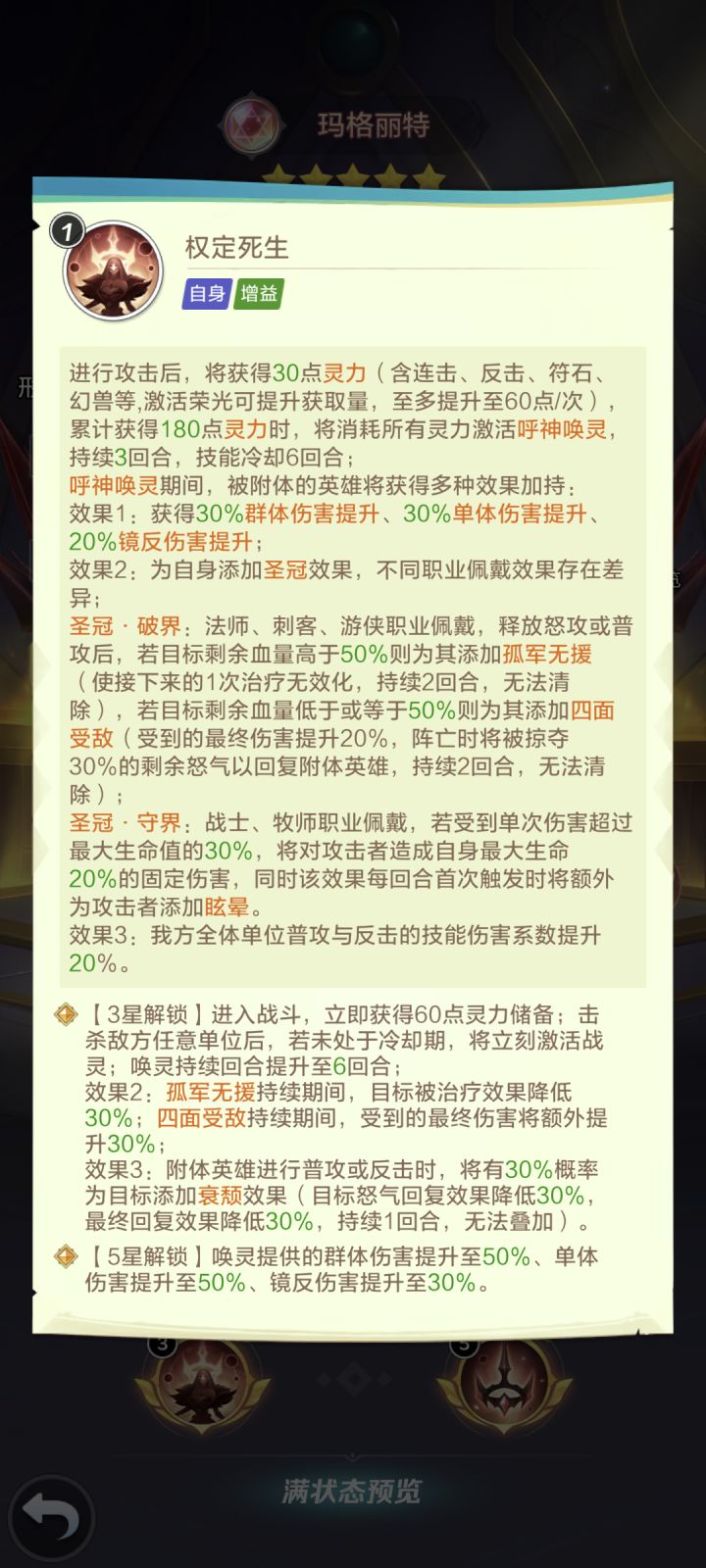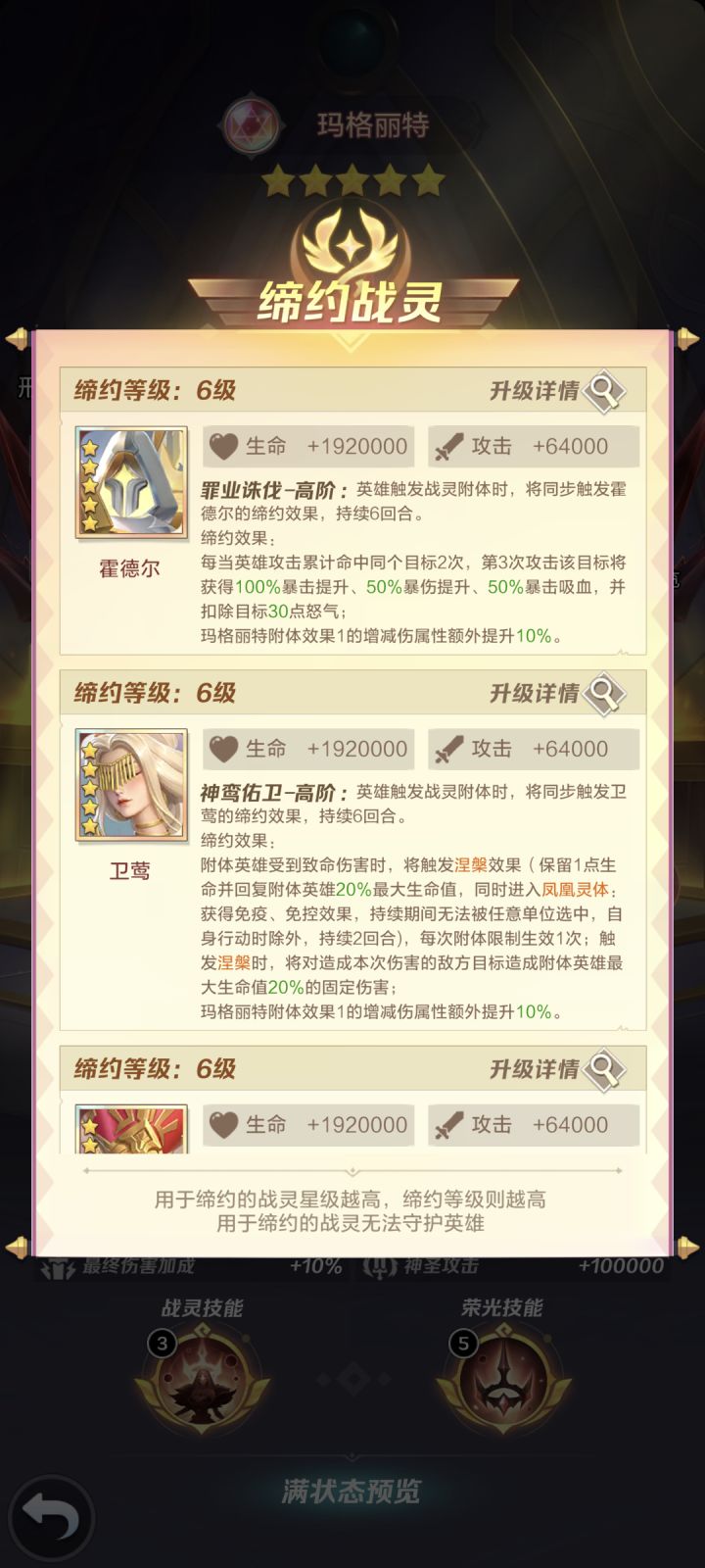 ③与其他战灵共鸣(“缔约”)获得其效果二并强化自身效果一