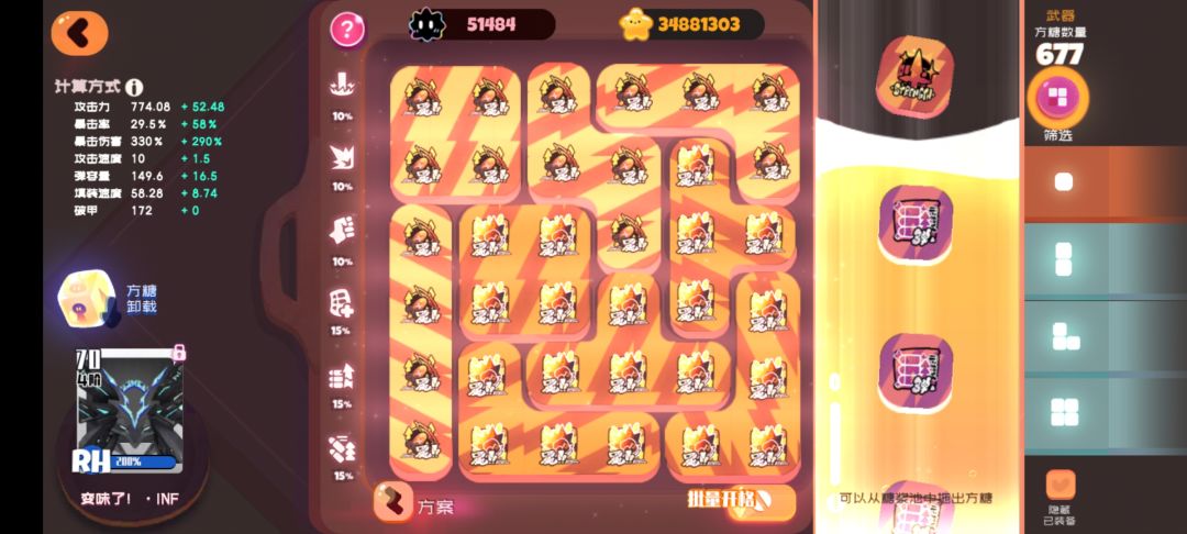 推荐一个目前很多人在用的一套无复活阵容吧,主要思路还是三叉姬主力输出,朵朵,打call,提升三叉姬的输出上限,保证角色存活率,如果你还担心存活问题的话也可以下掉鸡块,上个蛋挞。天赋树带同阵容增伤,爆率,配合键盘词条,方糖能达到一个满爆率的情况。大妖炽则是在破甲的同时还可以搭配只因和猫剑达到一个快速清注的效果,带上剪刀和鸡块则是尽可能提升这套阵容的输出上限,方糖的话我这边是朵朵技强,三叉姬技强,大妖炽冷却,当然了,这套阵容的伤害区间也是满大的,主要取决于鸡块的存活,但也能保证在120e以上了,如果你练度再高些应该是能保证把把150e起步了。(主要还是建立在三叉姬词缀,满菜园的情况下),我练度比较低,人物没升过阶,但对于满菜园来说应该是够用了。