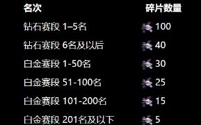 和之前的赛季一样,钻石与白金赛段的玩家可以得到洛林 40 t “无畏”的嘉奖令碎片。总共有100块碎片需要收集,而能够获得的碎片数量则由评级赛结束时所在的名次来决定: