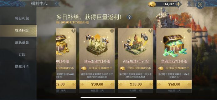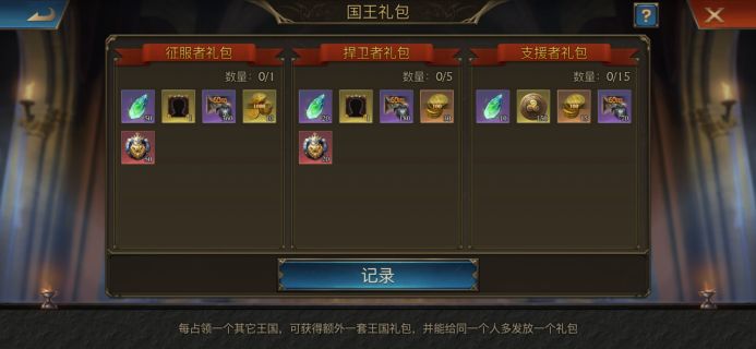礼包是最简单的获取方式了,如果说其他的任务活动需要花费时间、精力,需要等待结算时间和国王/联盟排名。那么礼包便是最简单粗暴的获取方式了。