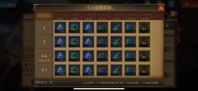 王国总动员就是刚才提到过个人和集体共同的活动了,但是因为王国排名我们个人没法左右,所以尽可能加入强大的国王获取更高的排名即可,重点还是要把自己能拿到手的奖励拿到。