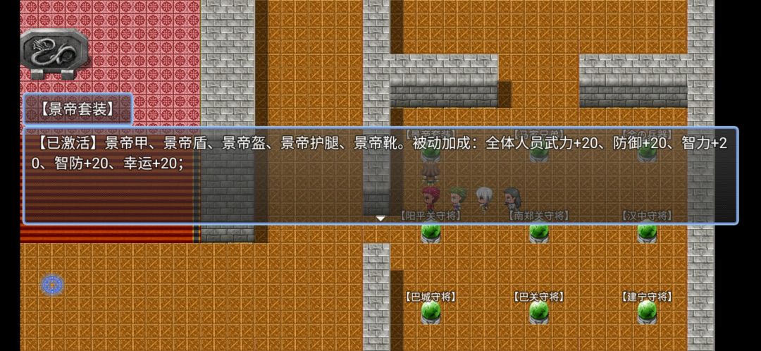 所需条件:景帝甲、景帝盾、景帝护腿、景帝靴
