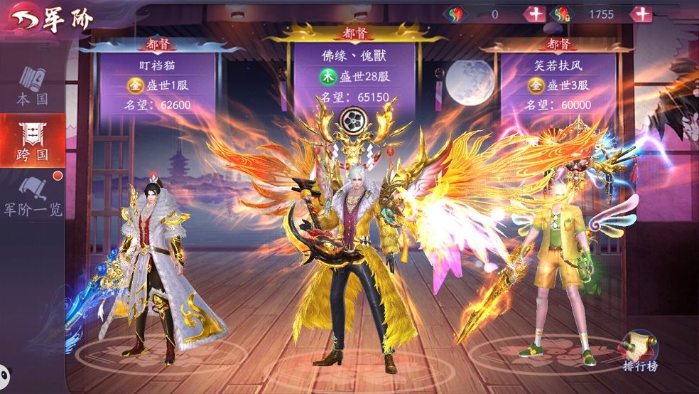 军阶从低到高分别是:守备、校尉、参将、总兵、都统、都督、将军、亲王。同时分为本国和跨国排行榜,本国排行和跨国排行前三降妖师将会在对应页面展示。