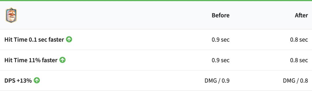 武僧的费用从4上升到5后,使用率就断崖式下跌。虽然很多玩家想让技能增加费用而不是兵种本身(4+2而不是5+1),Supercell还是想保留1费技能。于是他们对面板属性做了点改动。调整后,他的攻速增加了0.1秒,从而使DPS提高了13%。